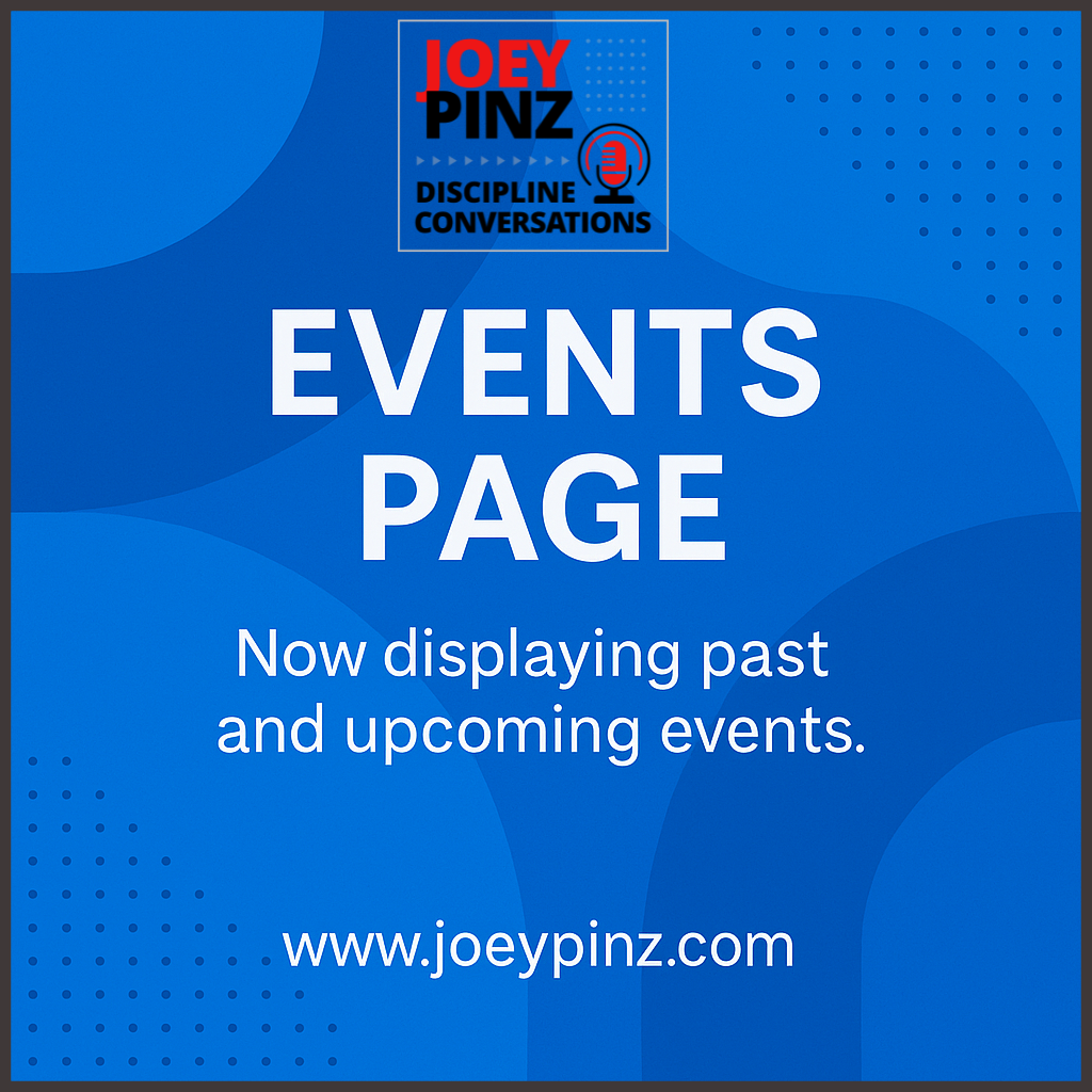 We’re excited to announce our new Events page, now live on www.joeypinz.com. This page highlights past events where the Joey Pinz Podcast has been featured and showcases upcoming appearances. Do you have an event where you’d like to feature our podcast? Let’s talk—we’d love to bring conversations, energy, and reach to your stage.