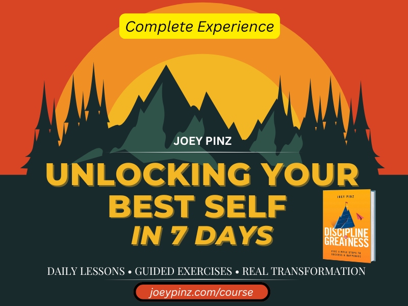This package includes everything you need to build lasting discipline, deepen your focus, and transform your habits with Joey Pinz’s proven 7-day system.